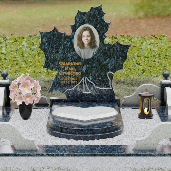 Данная мемориальная композиция — это воплощение глубокого уважения и вечной памяти, облаченное в художественную форму. Выбор формы кленового листа не случаен: в мировой символике он олицетворяет силу духа, красоту жизненного пути и мудрость. Каждая линия этой стелы пропитана эстетикой природного изящества. Резные края листа выполнены с филигранной точностью, создавая сложный, многогранный силуэт, который выделяется на фоне классических строгих форм. Плавные изгибы и отсутствие агрессивных углов призваны дарить чувство покоя и умиротворения, подчеркивая, что душа близкого человека обрела вечный приют в гармонии.