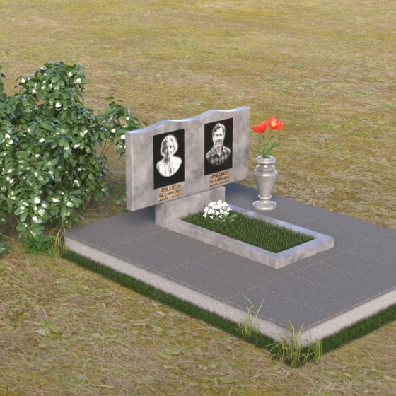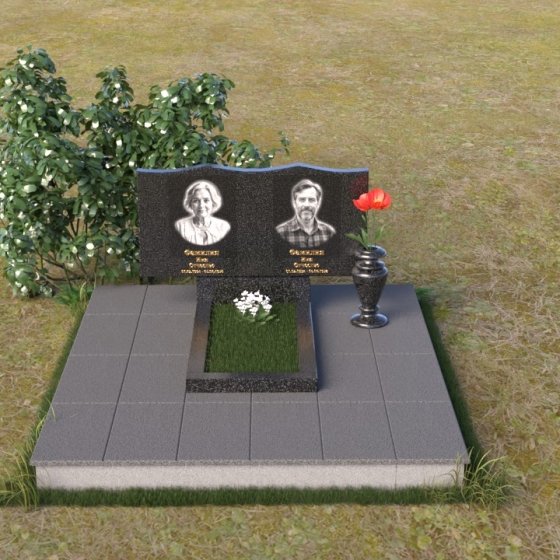 Эта мемориальная композиция – это не просто камень, это застывшая память, воплощенная в благородном материале. Взгляните на плавные линии стелы, словно две волны, стремящиеся друг к другу. Верхняя часть искусно вырезана, создавая мягкий, обтекаемый силуэт, который вызывает чувства умиротворения и покоя. Зеркальная полировка поверхности играет со светом, отражая окружающий мир и создавая ощущение глубины и объема. Гравировка портретов выполнена с филигранной точностью, передавая мельчайшие черты лиц ушедших. Контраст между идеально гладкой полированной поверхностью и выгравированными изображениями создает завораживающий эффект, притягивающий взгляд и заставляющий задуматься о вечном. Эта композиция – достойное обрамление светлой памяти о близких людях.