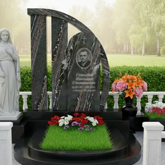 Кому подойдет: Эта мемориальная композиция идеально подойдет тем, кто ищет нечто большее, чем просто надгробие. Она предназначена для тех, кто стремится выразить глубочайшую скорбь и уважение к ушедшему, увековечив его память в произведении искусства, сочетающем в себе монументальность и изящество. Модель ПН 104 будет уместна для создания достойного места покоя, отражающего значимость личности и глубину чувств близких. Возможность выбора из 8 цветовых решений (7 видов гранита и 1 вид мрамора: гранит амфиболит, гранит Балтик грин, гранит Блю Перл, гранит Габбро-диабаз, гранит Дымовский, гранит Лезниковский, гранит Мансуровский, мрамор Тассо) позволяет подобрать камень, который наилучшим образом подчеркнет характер усопшего, его индивидуальность и жизненный путь. От классического черного до благородного серого или глубокого зеленого — каждый оттенок камня способен передать уникальную атмосферу памяти, делая мемориал по-настоящему личным и неповторимым.