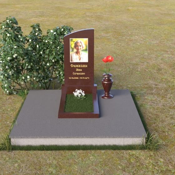 Прямоугольная стела с мягко скругленными углами, увенчанная едва заметным изгибом, словно склоняется в тихой скорби. Отсутствие острых углов и резких переходов создает ощущение гармонии и умиротворения. На полированной поверхности камня искусно выгравирован портрет, выполненный с высокой степенью детализации. Лицо ушедшего человека, словно живое, смотрит на нас с теплотой и мудростью. Ниже портрета располагается лаконичная надпись, выполненная строгим шрифтом. Имя, отчество, даты жизни – все это запечатлено в камне, чтобы память о человеке жила вечно.