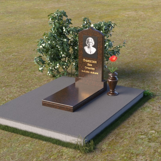 Форма этого гранитного монумента идеально подходит для размещения портрета усопшего. Благодаря своей вытянутой форме, он позволяет создать гармоничную композицию, где портрет будет занимать центральное место и привлекать к себе внимание. Золотое начертание имени и дат жизни на фоне темного полированного гранита выглядит особенно торжественно и выразительно. Вы можете выбрать любой из восьми доступных вариантов камня, чтобы подчеркнуть индивидуальность образа и создать памятник, который будет полностью соответствовать вашим представлениям о красоте и гармонии. Гранит амфиболит с его неповторимыми разводами, Балтик грин с его мягким зеленым оттенком, Блю Перл с его искрящимися вкраплениями, Габбро-диабаз с его глубоким черным цветом, Дымовский с его теплым коричневым оттенком, Лезниковский с его насыщенным красным цветом, Мансуровский с его светлым и благородным видом, или же классический мрамор Тассос – каждый из этих камней обладает своим уникальным характером и способен передать всю глубину ваших чувств. Подберите камень, который лучше всего отражает характер человека, которому посвящен этот гранитный монумент.