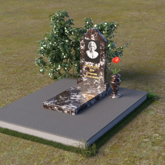 Арка, венчающая стелу, традиционно символизирует переход – врата в иной мир, обещание небесного покоя. Скругленные углы смягчают строгость камня, олицетворяя нежность и заботу, которые мы испытываем к ушедшим. Зеркальная полировка поверхности камня отражает свет, создавая ощущение чистоты и возвышенности. Горизонтальная плита символизирует основательность и стабильность, напоминая о прочной связи между поколениями. Общая форма композиции создает ощущение защиты и умиротворения, словно оберегая память о дорогом человеке от забвения.