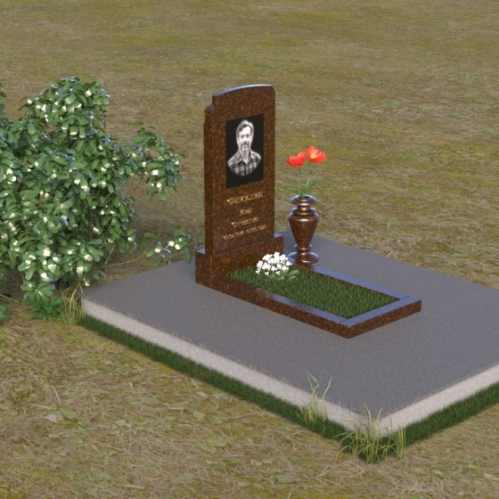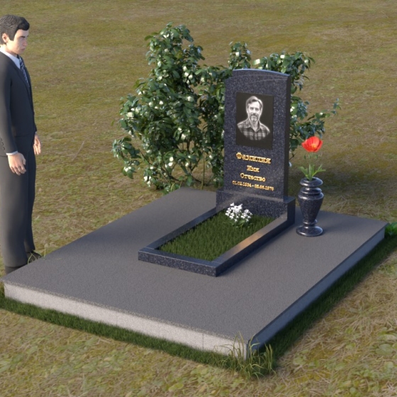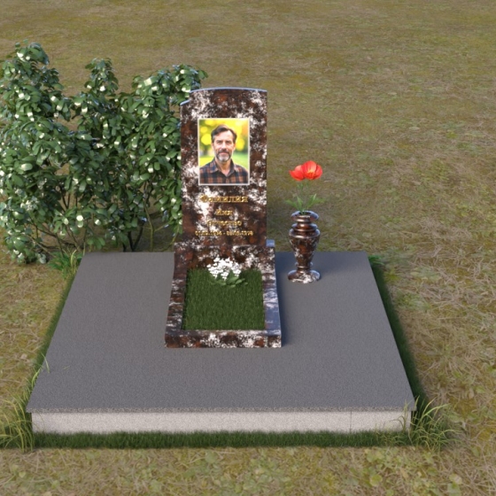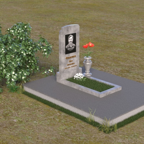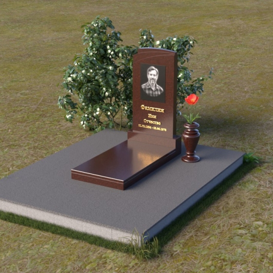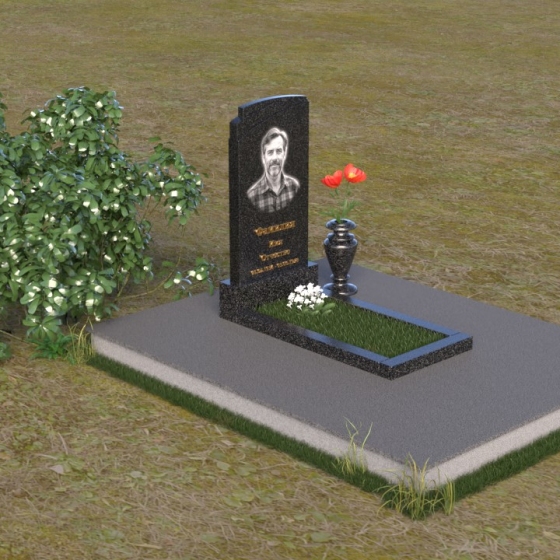 Мемориальная композиция ПВ 075 представляет собой элегантное и сдержанное решение, в котором гармонично сочетаются строгие геометрические формы и отполированные поверхности. Вертикальная стела, выполненная из прочного камня, имеет прямоугольную форму с мягко скругленными углами, что придает ей визуальную мягкость. На стеле расположено гравированное изображение усопшего, выполненное с высокой степенью детализации. Ниже портрета располагается надпись с именем и датами жизни, выполненная элегантным шрифтом. Горизонтальная плита, расположенная перед стелой, имеет идеально отполированную поверхность, отражающую небо и окружающий пейзаж, создавая ощущение глубины и покоя. Венчает композицию небольшая ваза из того же камня, предназначенная для цветов.
