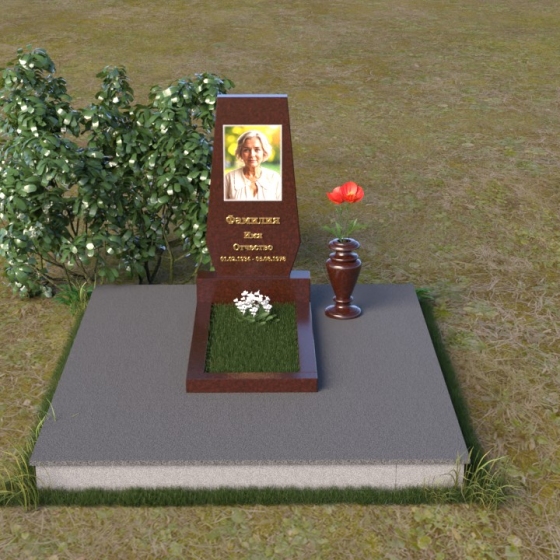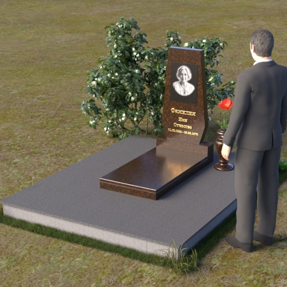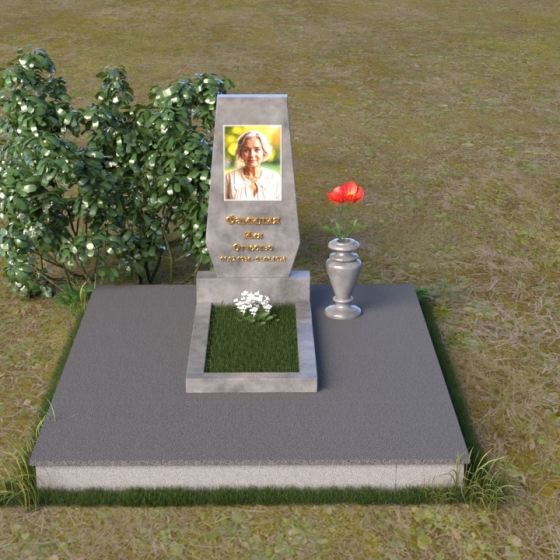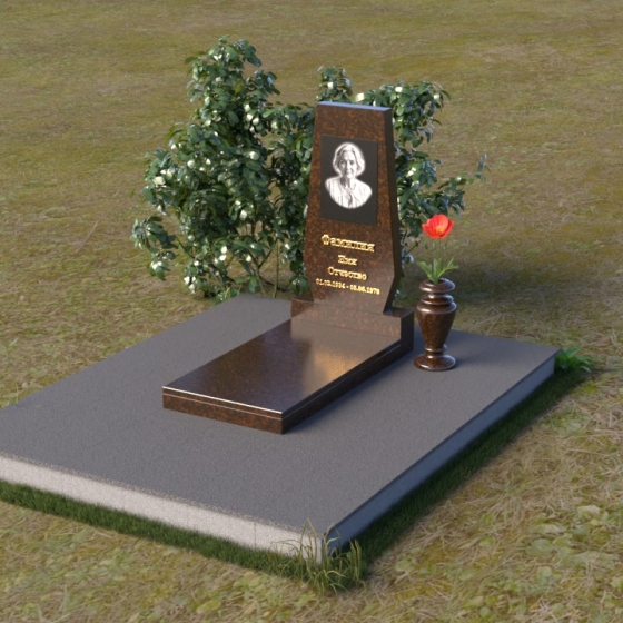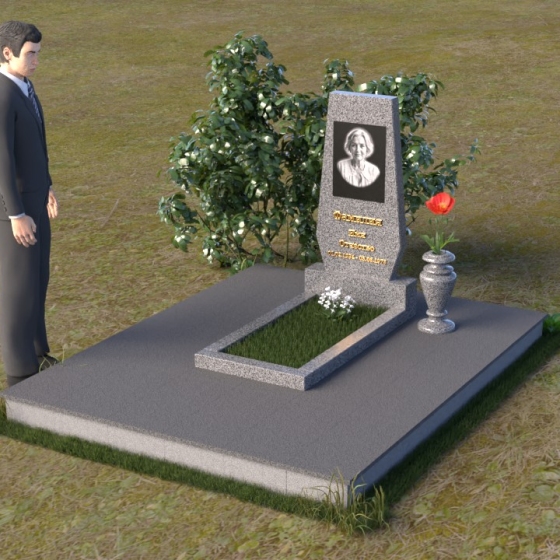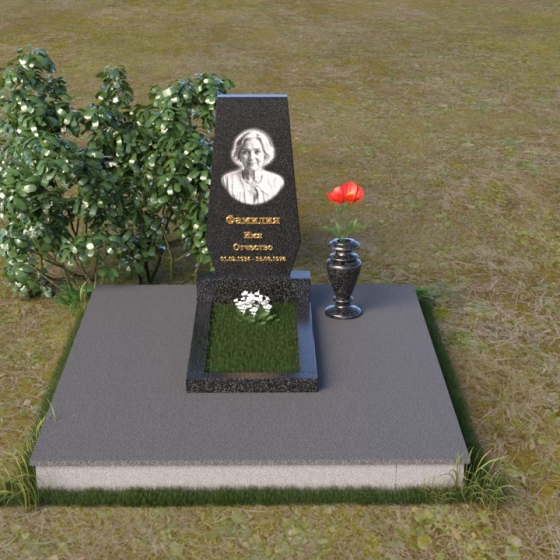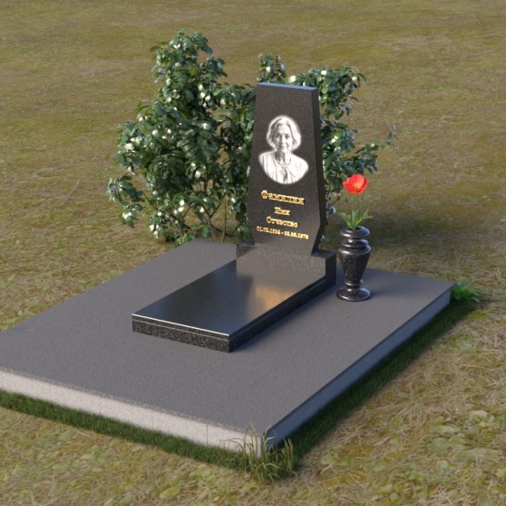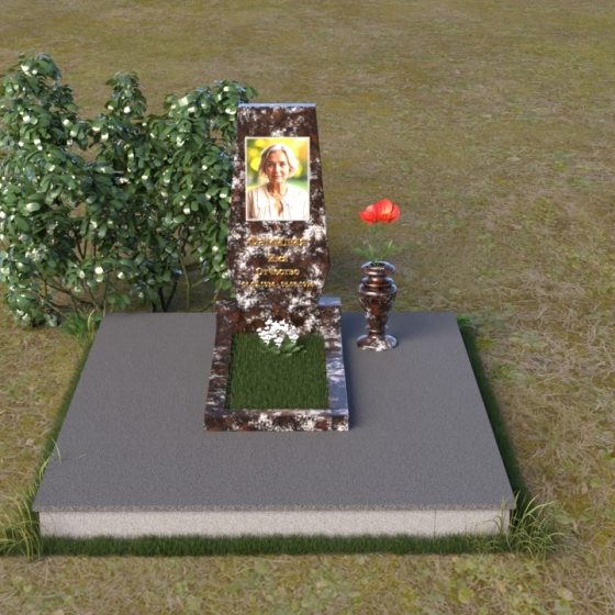 Строгие линии и сдержанная форма этого надгробного сооружения предоставляют широкие возможности для оформления. Портрет усопшего, выполненный в технике гравировки, будет выглядеть особенно выразительно на фоне зеркально отполированного гранита. Золотое начертание имени и дат жизни добавит памятнику торжественности и благородства. Расположение портрета может быть как классическим – в верхней части плиты, так и более оригинальным – смещенным вбок, что позволит добавить дополнительные элементы декора, такие как эпитафия или символические изображения. Небольшой цветник, расположенный в нижней части памятника, станет местом для живых цветов, символизирующих неувядающую память и любовь. Узкая горизонтальная плита, примыкающая к вертикальной части, позволяет разместить свечи или лампадки, создавая атмосферу умиротворения и покоя.