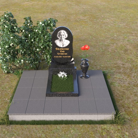 Обратите внимание на полировку камня. Зеркальная гладкость черного гранита создает удивительную игру света и тени. На солнце стела словно оживает, отражая окружающий мир и напоминая о светлой душе, ушедшей в вечность. Глубокий черный цвет символизирует скорбь и уважение, а безупречная полировка – чистоту помыслов и искренность чувств. Так же, в комплекте с памятником идёт ваза из аналогичного материала, выполненная в классическом стиле.