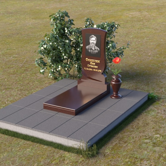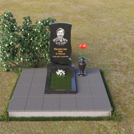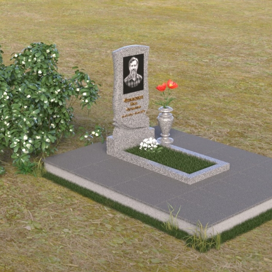 Геометрия модели продумана до мелочей. От основания, выполненного в виде прямоугольной плиты, переходящей в надгробную плиту с зеркальной полировкой, до изящного изгиба верхней части стелы – каждый элемент работает на создание гармоничного и запоминающегося образа. Плавные линии смягчают строгость камня, а контраст полированных и матовых поверхностей придает глубину и объем. Маленькая ваза, выполненная из того же гранита, что и остальная композиция, довершает образ, позволяя разместить живые цветы в память об ушедшем.